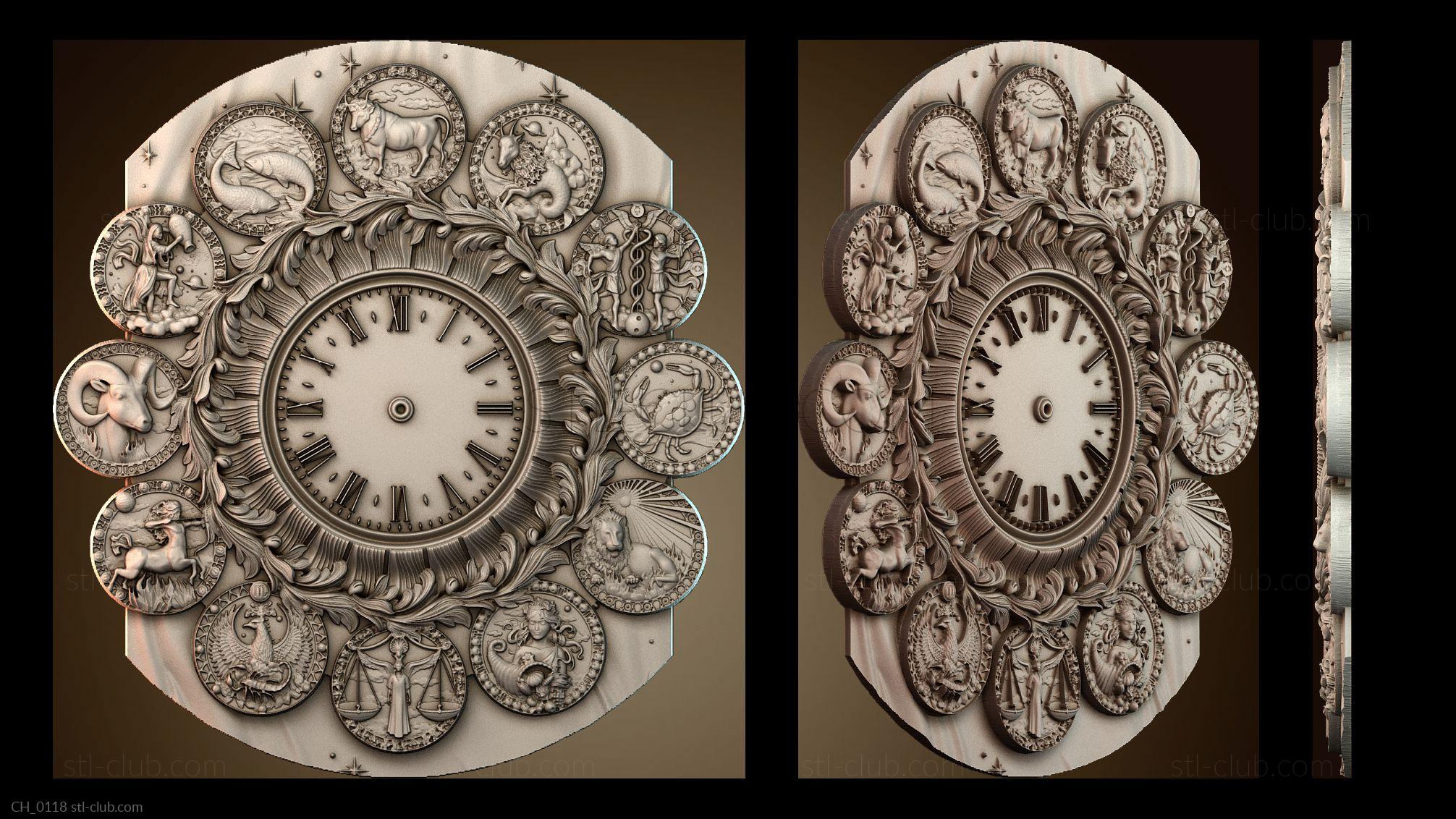 3D модель Часы показывают двенадцать знаков зодиака. (STL)