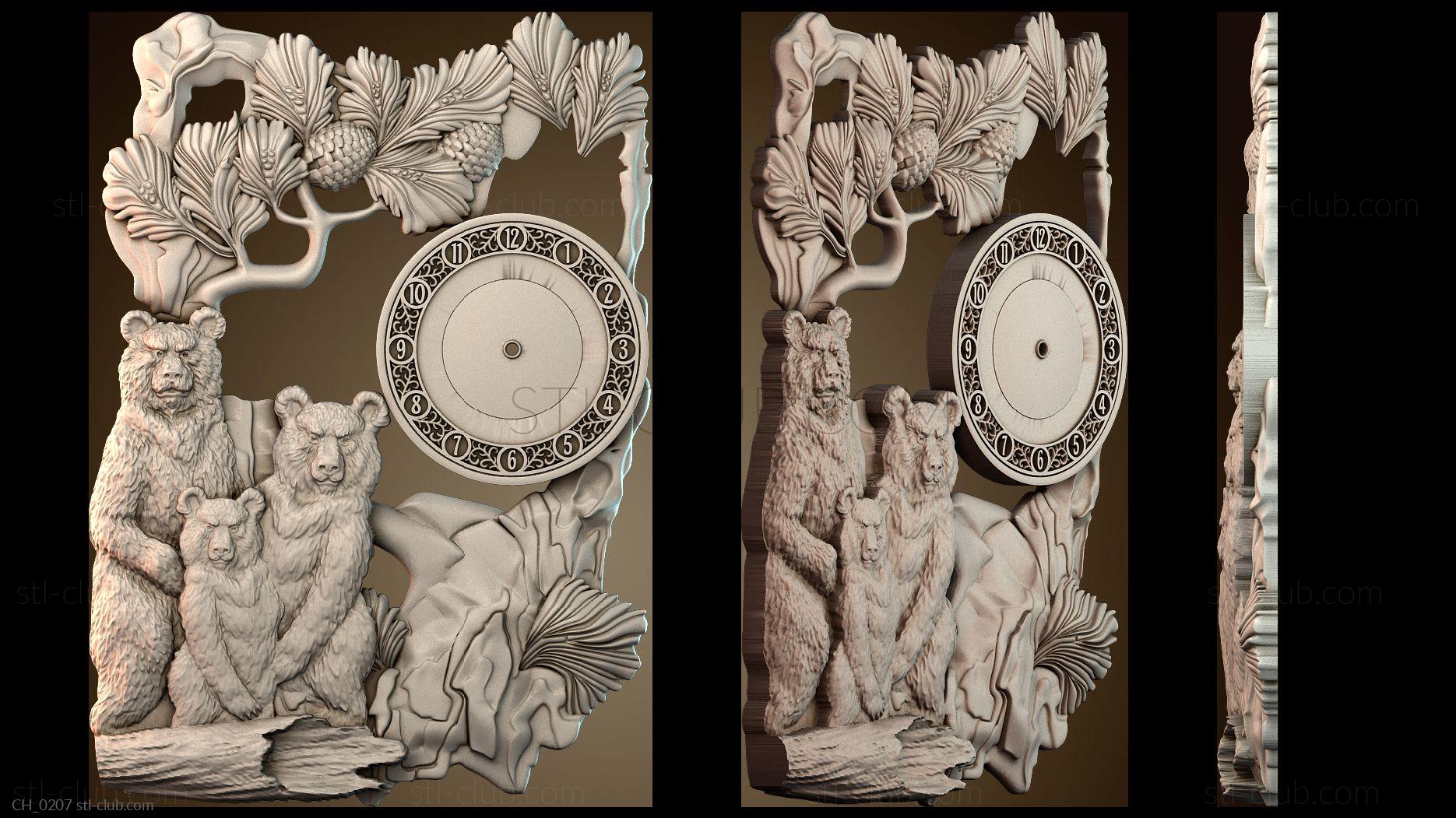 3D модель Настенные часы «Семья медведей» (STL)
