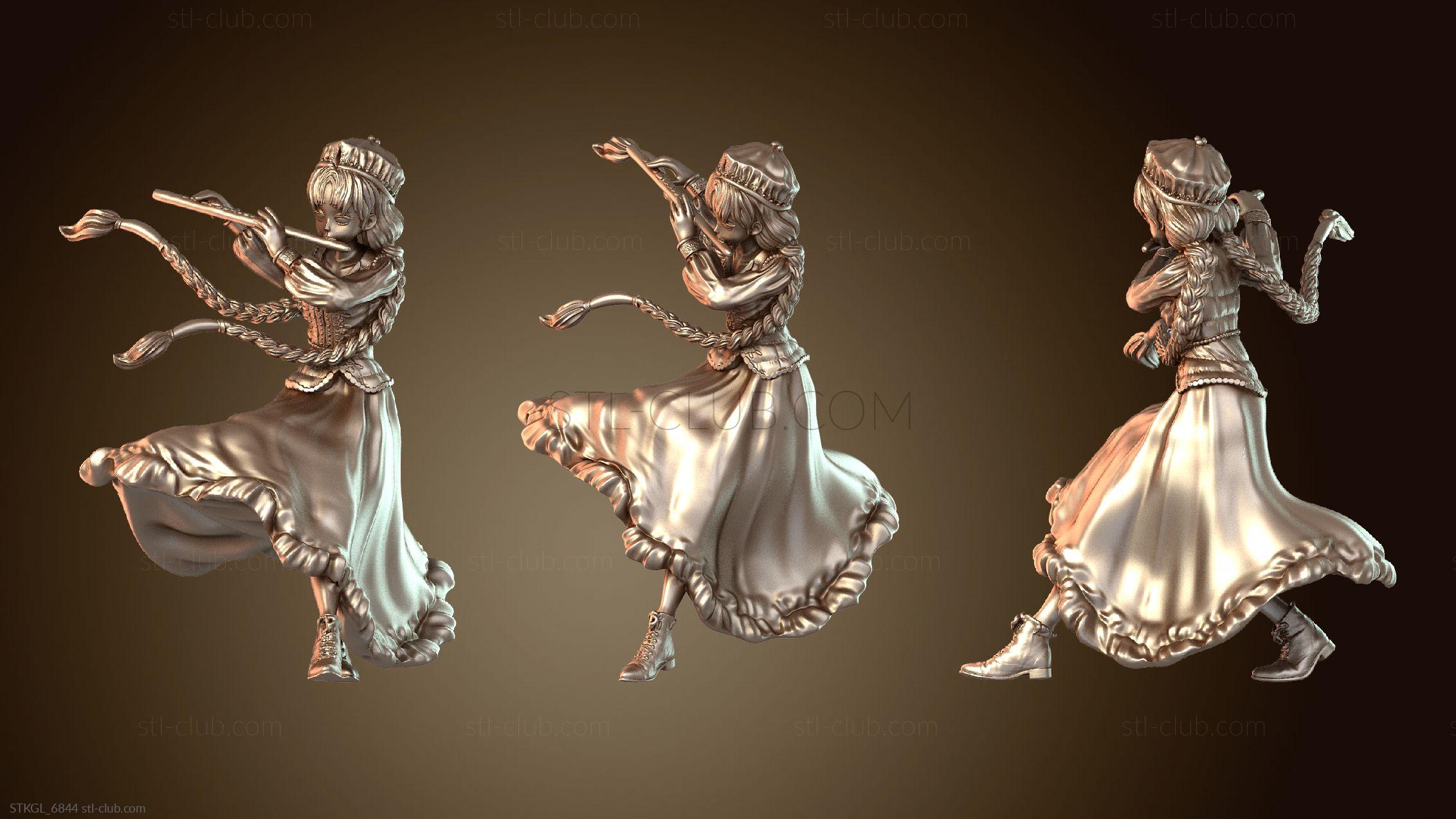 3D модель Девушка-скандинавский бард, играющая на флейте (STL)