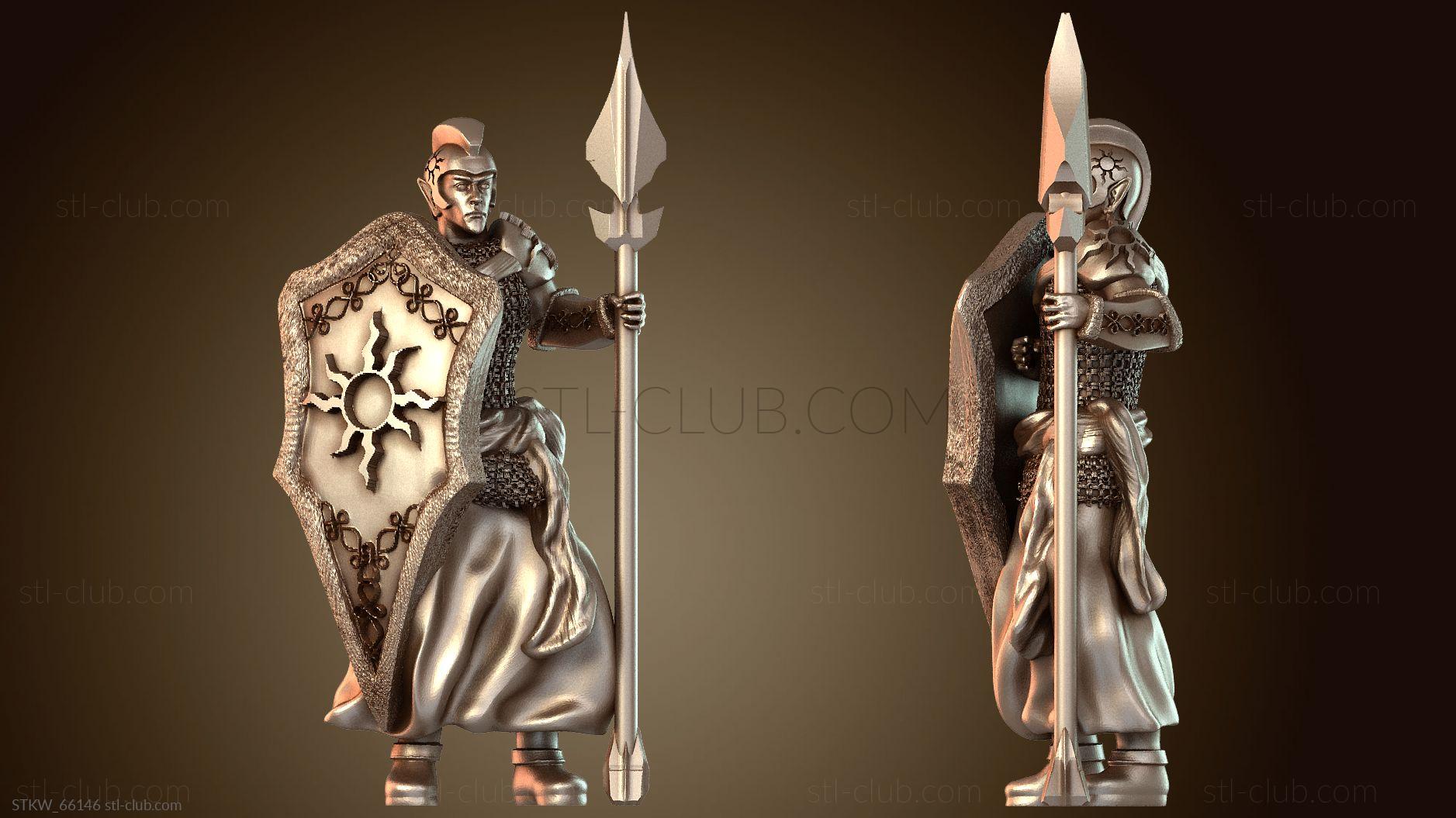3D модель Солнечный эльф-копейщик в доспехах (STL)