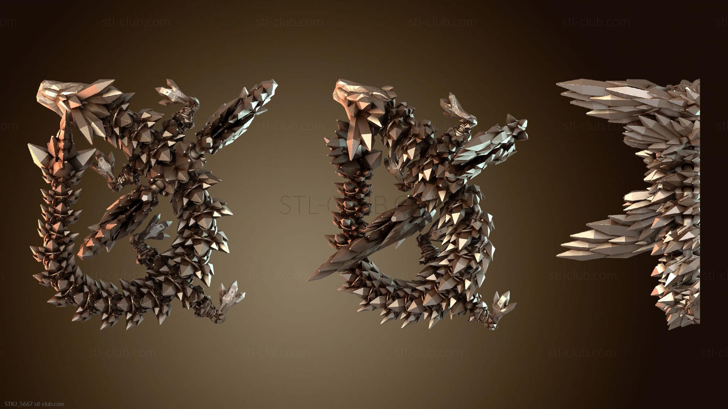 3D модель Сочлененный кристальный дракон с крыльями (STL)