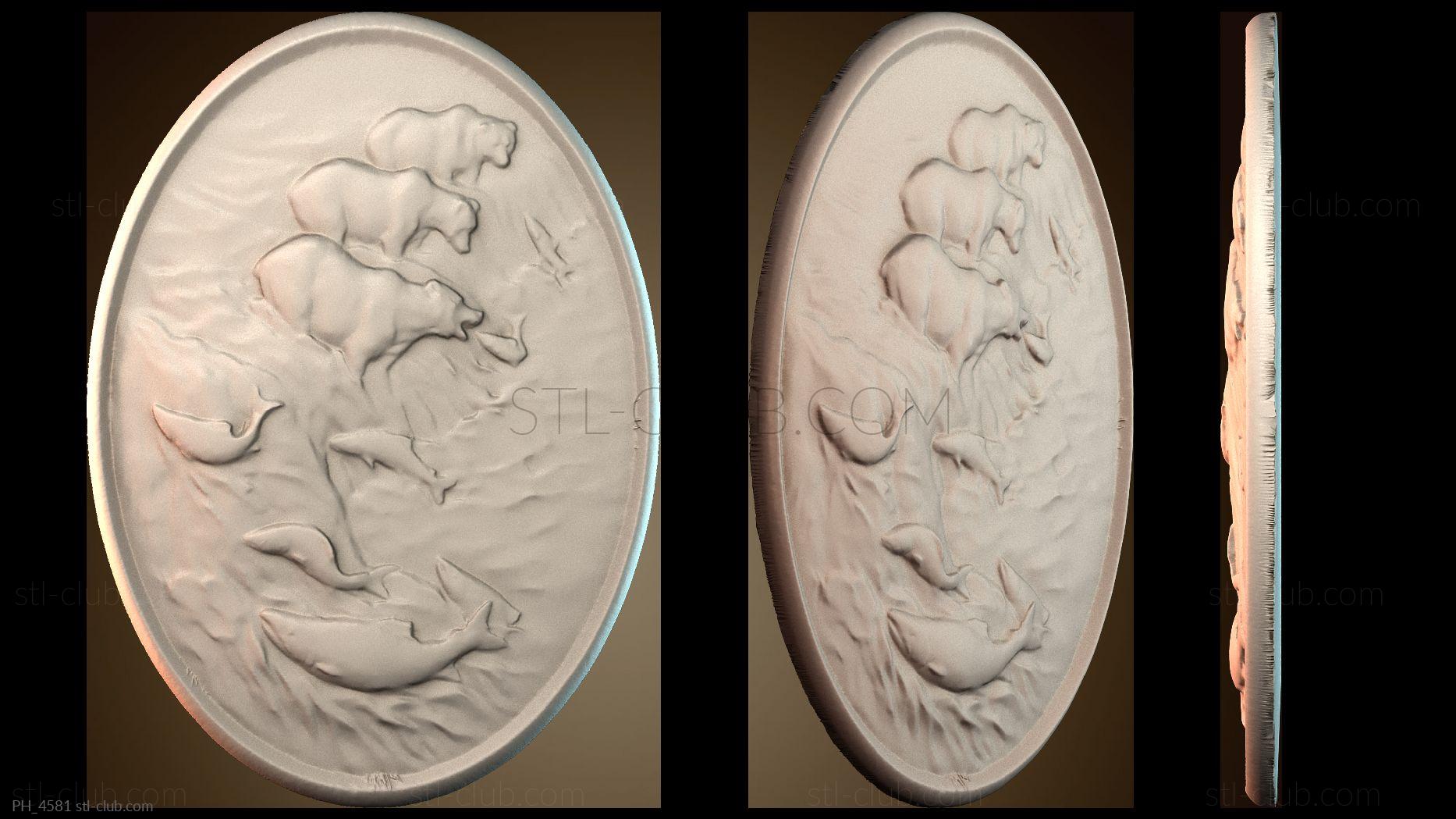 3D model Bear catches fish picture oval (STL)